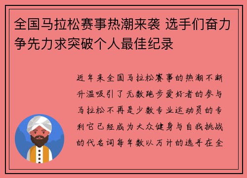 全国马拉松赛事热潮来袭 选手们奋力争先力求突破个人最佳纪录